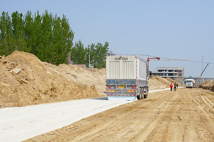 九州陸達牌粉料撒布車助力巨野高鐵站道路建設