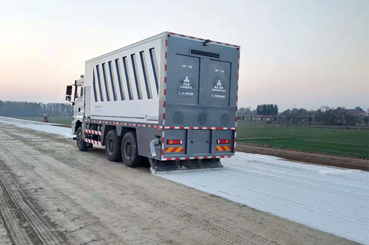 九州陸達牌粉料撒布車在無錫太湖景區(qū)梅梁路舊路翻新工程的應用