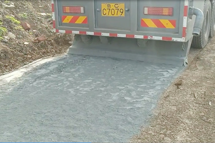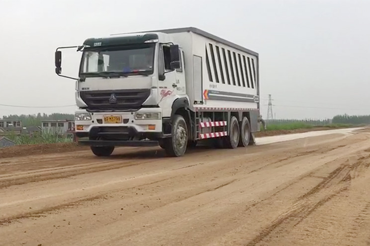 山東陸達水泥撒布車在安徽G105宿松段水毀修復工程上大展身手
