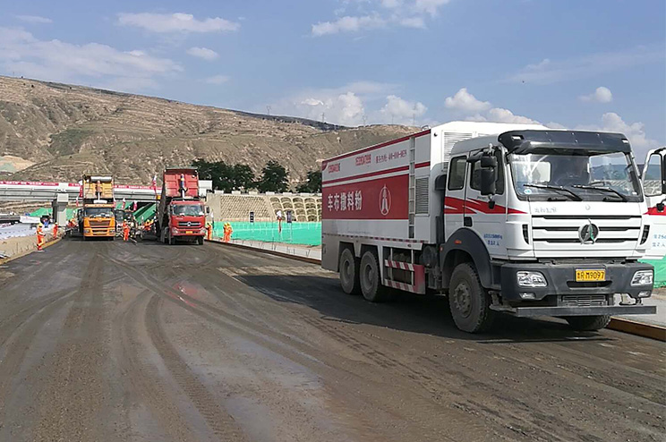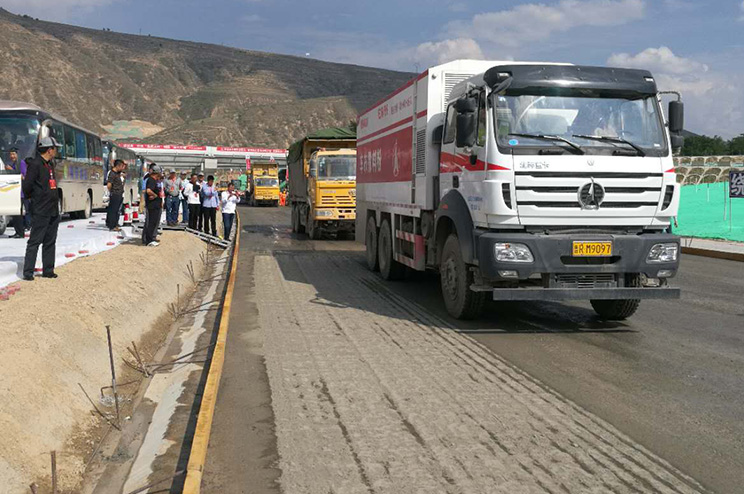 2018年6月20日,中交三公局蘭州南繞城高速施工現(xiàn)場,陸達(dá)粉料撒布車在水穩(wěn)粘結(jié)層新工藝中擔(dān)任“主角”, 蘭州市公路局、交通局、公航旅等上百名領(lǐng)導(dǎo)及嘉賓親臨現(xiàn)場觀摩,憑借攤鋪量僅為1KG/㎡水泥的精細(xì)控制,九州陸達(dá)牌粉料撒布車用完美的施工效果,得到了現(xiàn)場觀摩領(lǐng)導(dǎo)和嘉賓的高度認(rèn)可!