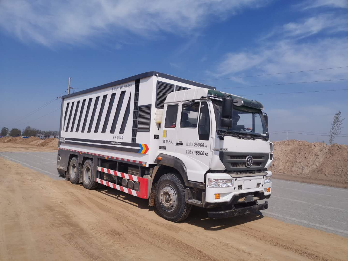 九州陸達牌粉料撒布車助力西安長安區錦業二路380CR施工
