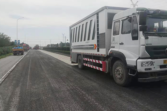 九州陸達牌粉料撒布車南通啟東市356省道沿江公路泡沫瀝青就地冷再生施工