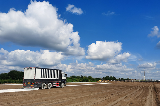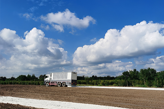 九州陸達(dá)牌粉料撒布車助力山東地區(qū)道路建設(shè)