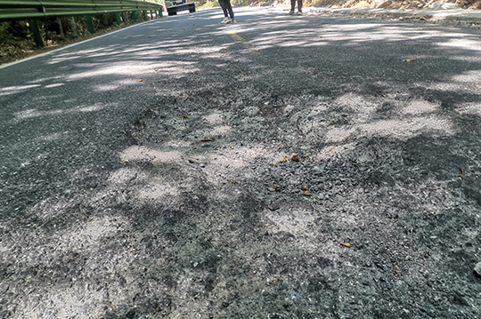 此次施工現(xiàn)場(chǎng)位于黃山區(qū)焦村鎮(zhèn)境內(nèi),湯家莊至章村(樁號(hào)里程為K20+570-K30+151),是郭村至太平區(qū)的公交車(chē)行駛路線,也是部分自駕車(chē)主行駛路線,同時(shí)還是國(guó)內(nèi)很多知名車(chē)企的新車(chē)測(cè)試路線。該路段車(chē)流量大,貨運(yùn)重車(chē)較多,造成路面坑洼、泛油等現(xiàn)象,嚴(yán)重影響行車(chē)安全性。