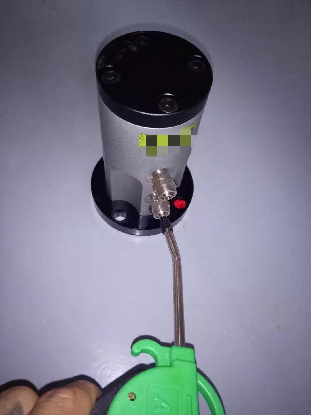 (2)、將振動(dòng)器平放于地面,用氣槍對(duì)吹振動(dòng)器上下兩個(gè)氣口,查看振動(dòng)器震動(dòng)是否恢復(fù)正常,如果效果還是不理想,可向氣口內(nèi)滴幾滴潤(rùn)滑油,再次向氣口吹掃,查看是否能恢復(fù)正常。如能恢復(fù)正常,按照原方式將振動(dòng)器再次配裝,配裝時(shí)避免進(jìn)入粉塵。