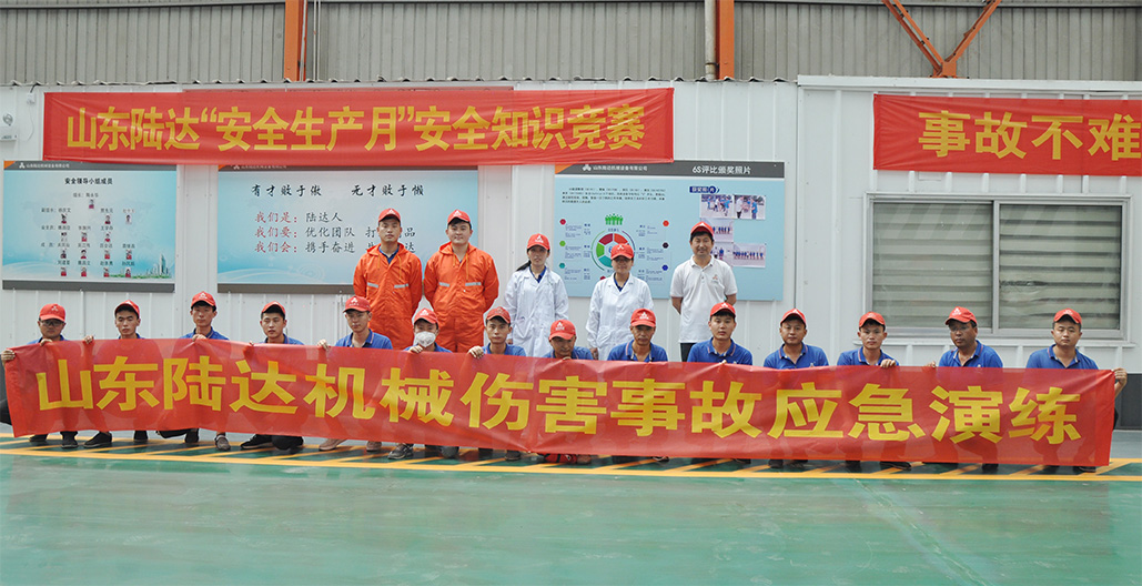 8月17日上午,在山東陸達副總經理趙中軍為總指揮,生產部經理楊慶文為副總指揮,安全環保部部長賈先元為現場指揮的組織下,生產車間一線員工均參加此次演練。此次應急演練的主要內容有員工工作受傷、人員疏散和傷員救援車等模擬演練,讓員工了解在發生安全事故時如何進行處置及自救、護救。
