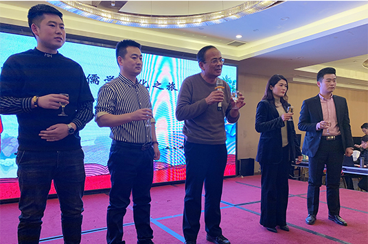 從左至右:北方大區部長孔垂永、南方大區部長付長情、總經理楊慶玉、西北大區部長張彥、西北大區副部長畢賢明共同為本次晚宴祝酒。
