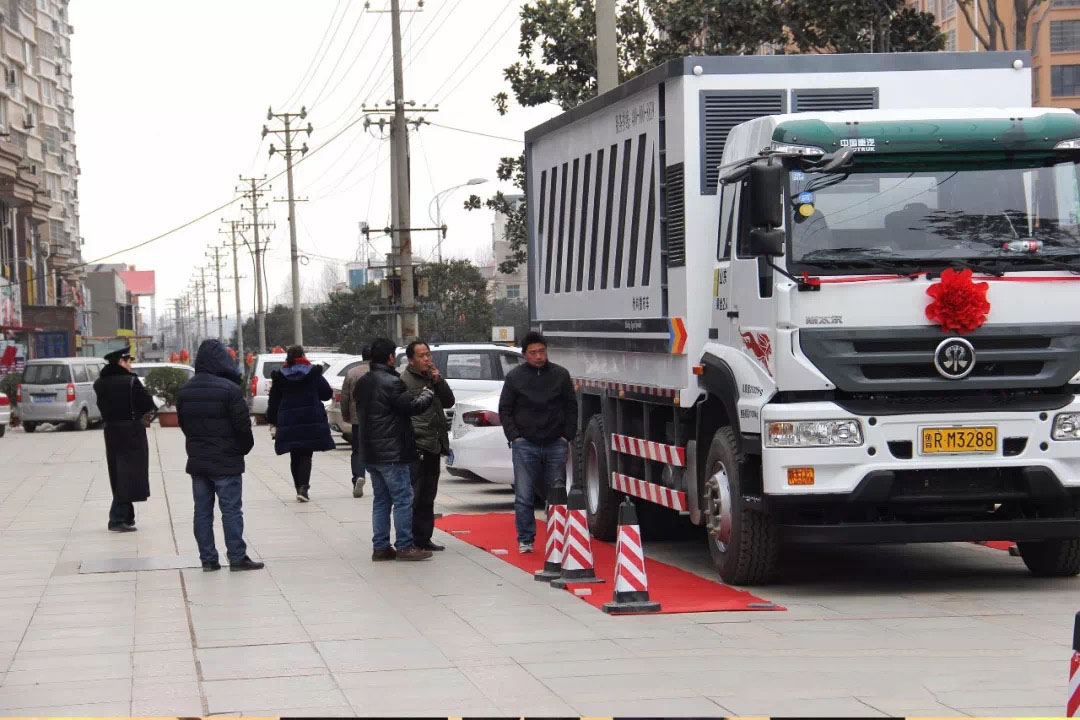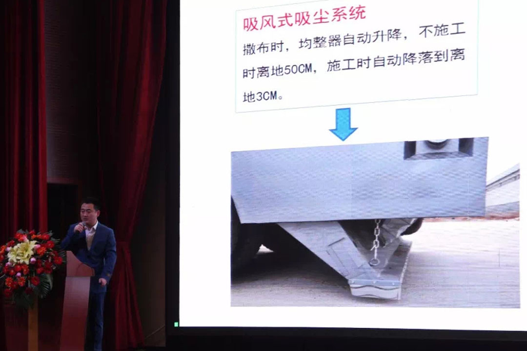 付部長為在場人員做產品介紹,分享了陸達牌粉料撒布車從研發生產出第一臺車的發展歷程。六年來,陸達牌粉料撒布車完成了四代產品的升級改進,不斷升級產品性能,銷售形勢一路走俏!