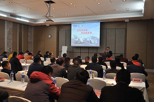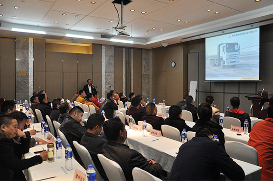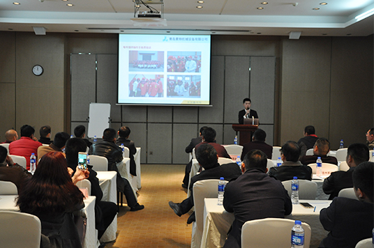 圖為楊總為大家介紹公司發展歷程及“陸達牌粉料撒布車”的研發過程。陸達牌粉料撒布車是路面機械首輛實際應用于公路撒布工作的工程車。經過四年的發展,陸達牌粉料撒布車成為行業內同類產品中的佼佼者,用戶口碑極佳。
