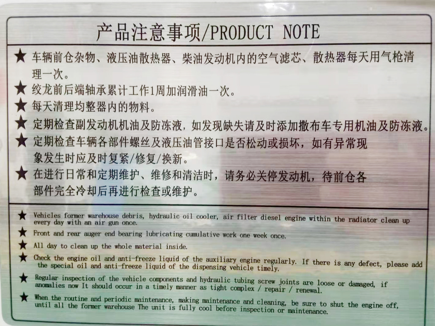 前倉內安裝著較多的配件,也是日常維護保養、檢修的重要部位,在閱讀操作使用手冊的同時,也要留意下前倉卷簾門右側的操作使用說明。