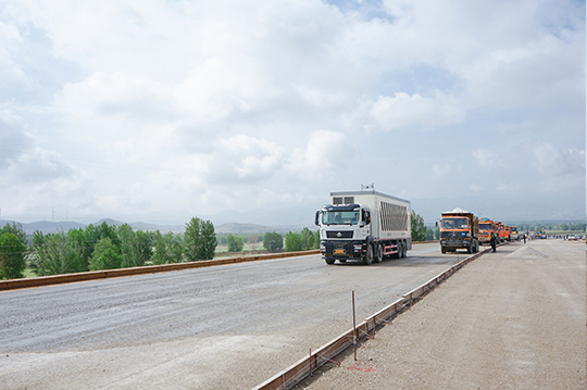 項目采用水穩粘結層工藝,九州陸達水泥凈漿灑布車憑借超強的環保性和可靠性,參與此次項目施工。灑布車灑布的水泥漿,保證水穩上、下兩層的粘結性,提高結構層的強度和穩定性,延長路面的使用壽命。經現場實際施工驗證,施工方和業主方均反饋施工效果好,“灑布的水泥漿很均勻,效率高,設備經濟高效”。