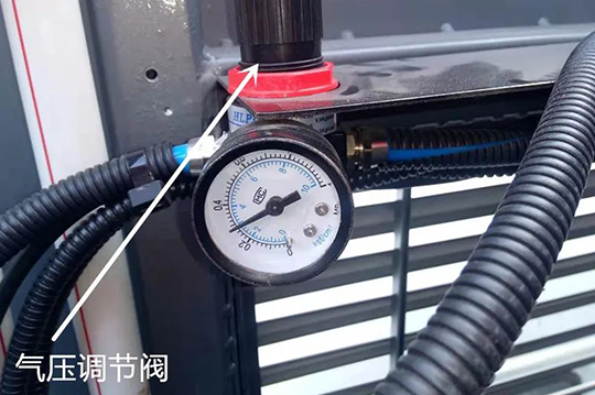 調節閥位于水罐一側,上有旋轉調節鈕,并有“+”、“-”符號標注,調節鈕上提將調節鈕解鎖對氣壓進行調節。