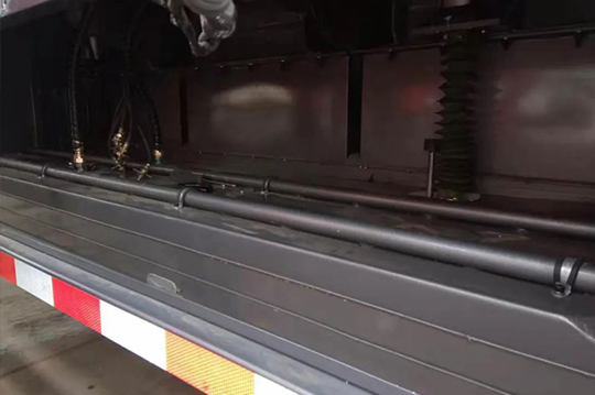山東陸達基于對市場需求的前瞻性,依托于撒布車領域的核心技術沉淀,對原有操作系統及撒鋪系統進行升級優化,研發出獨有專利的部件-噴淋降塵系統,在施工中起到抑制揚塵的作用。